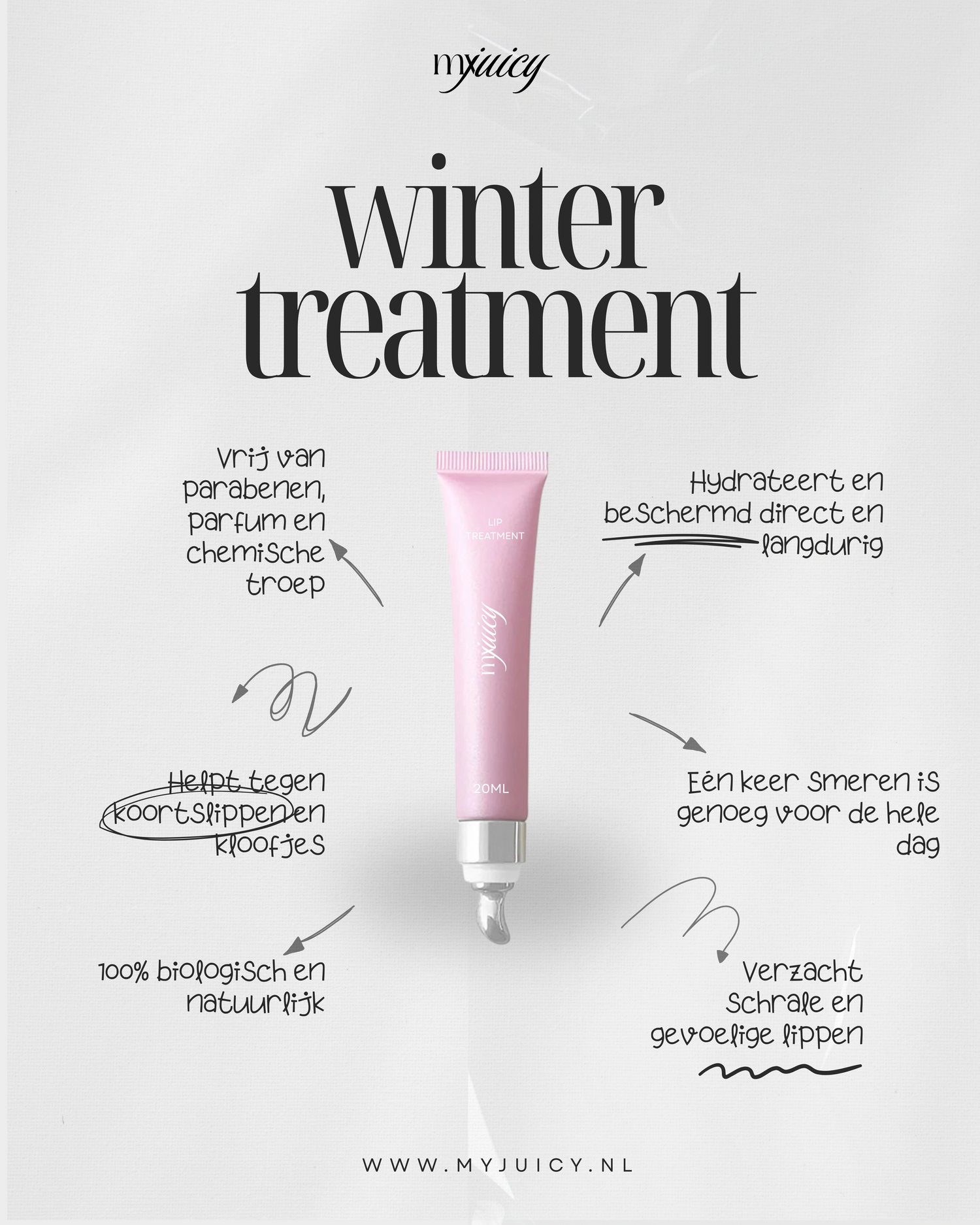 Daarom hebben we de Winter Lip Treatment ontwikkeld: een krachtige mix van natuurlijke oliën die je lippen intens hydrateren, herstellen en beschermen.